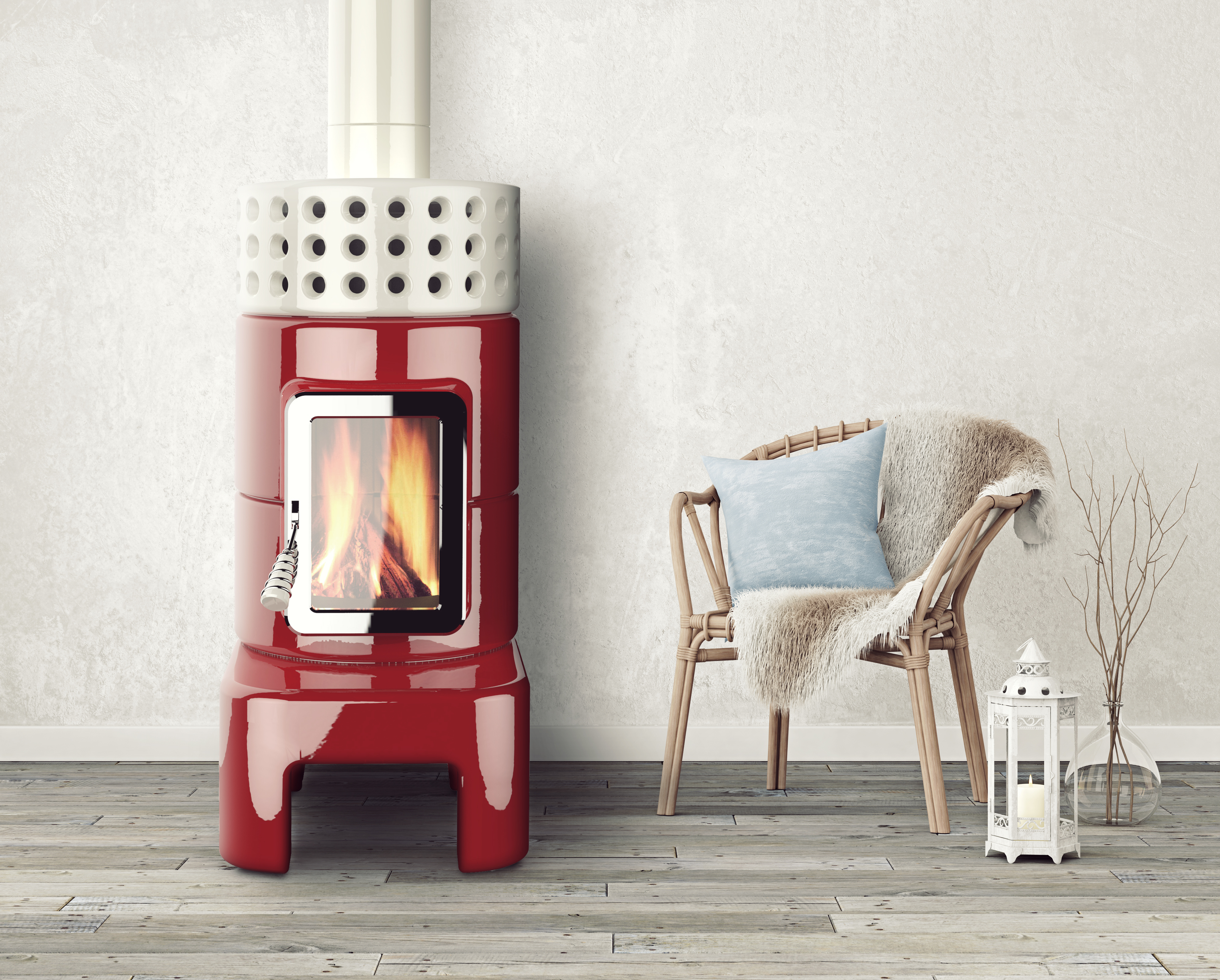 Mit Kaminofen Attika.